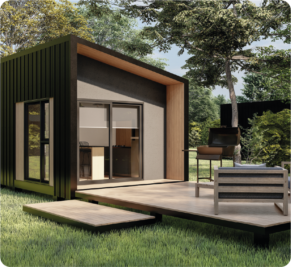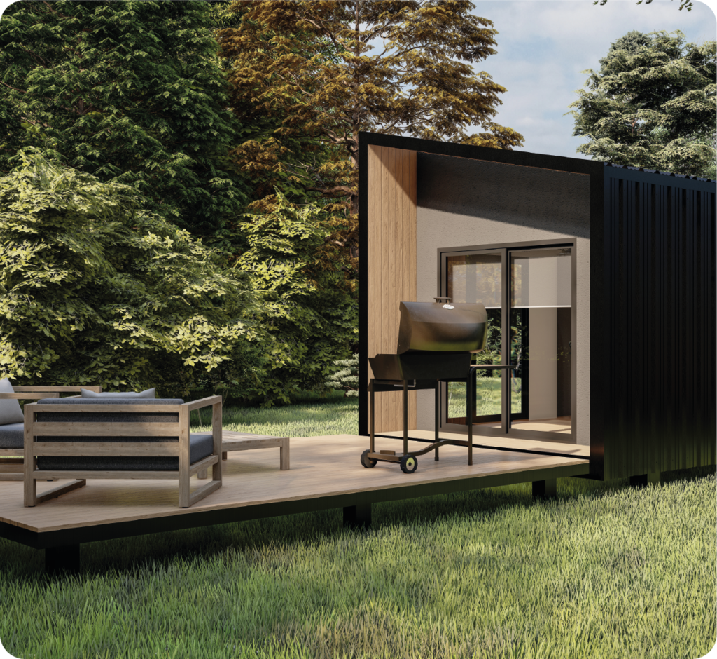 Antebaño mesada de granito leather, vanitory en melamina Egger, alzada en microcemento, bacha sobremesada, grifería monocomando